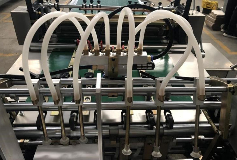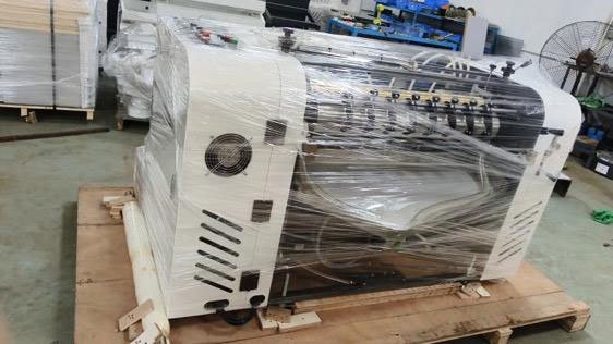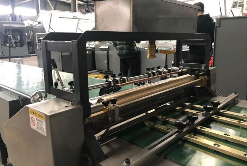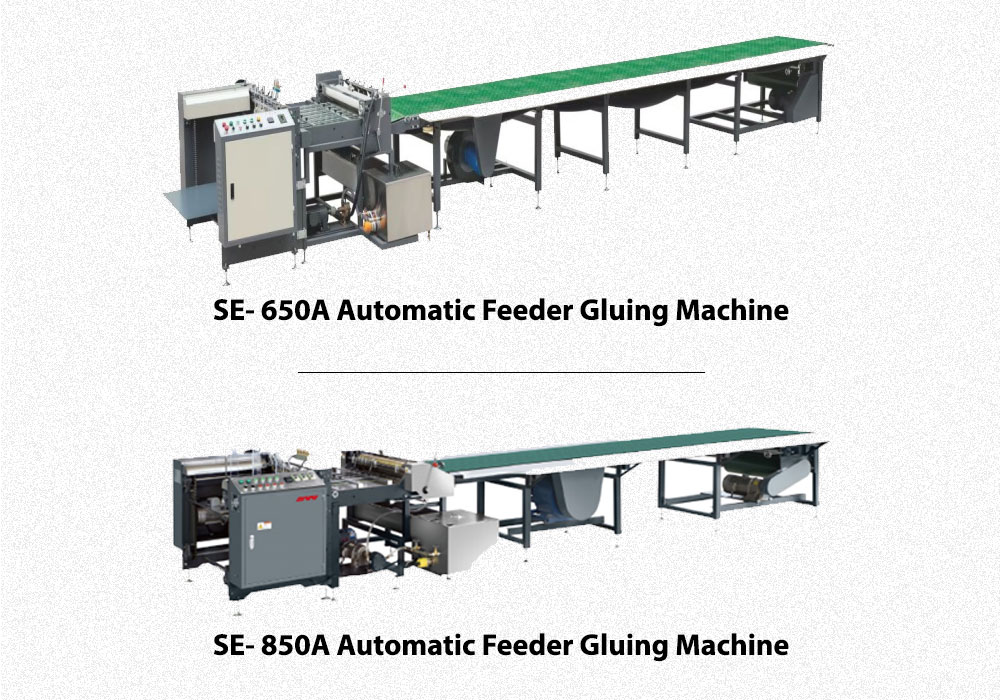 Gluing roller with copper knife, which avoid paper stick on roller, ball bearing design of feed table, the sheets are conveyed straight-through by pressure system. Machine can use the jelly glue and cold glue, with separated glue tank.