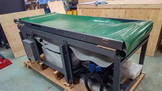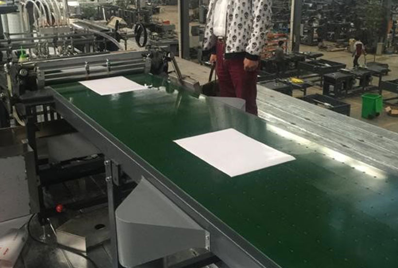 Conveyor equipped with air-suction system to forward sheet flat and stably. Belt length common is 6 meters, and it can be customized, min length is 2.2 meters.