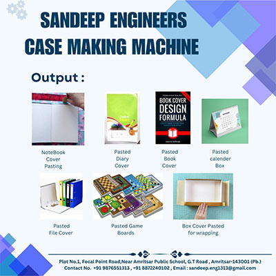 Sandeep Engineers semi-automatic Case-making Making Machine is manufactured as per the customer's demands or needs. Sandeep Engineers case-making machine is designed for short and medium-run jobs. It offers an efficient and precise gluing mechanism. It is suitable for various industries and delivers high-quality results with durability and reliability for professional packaging needs. Combining manual and automatic features, the machine streamlines the case-making process while still requiring operator intervention for certain tasks. The productivity of the case-making machine can be enhanced by the combination of other machines like the box forming machine and the box Corner Taping Machine. We also manufactured the Case-making machine with an automatic feeder.